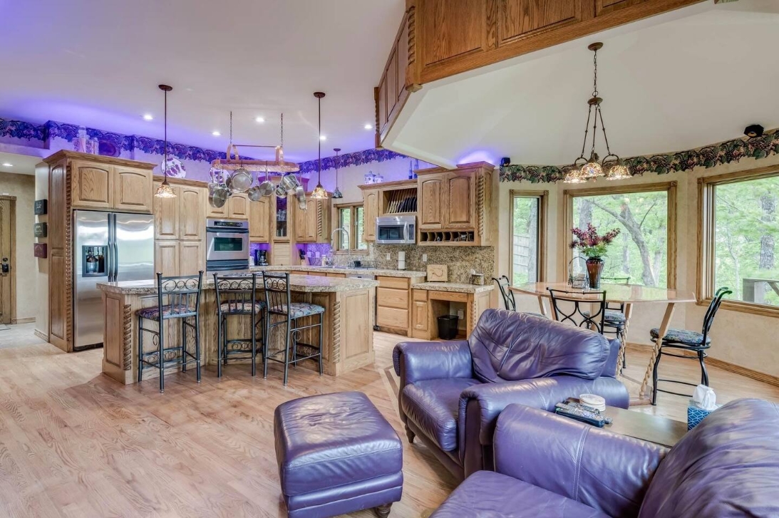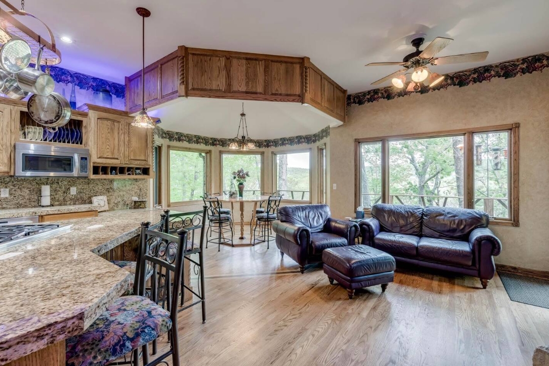 The area offers a tranquil environment for those who prefer to relax on the back deck overlooking the river below. Visitors can also enjoy other outdoor activities such as hiking, biking, four-wheeling, kayaking, swimming, and fishing. Hundreds of people also party on the upper Illinois River every weekend, and launching a boat or jet ski is just two minutes from the house on Beautiful Lake Tenkiller.