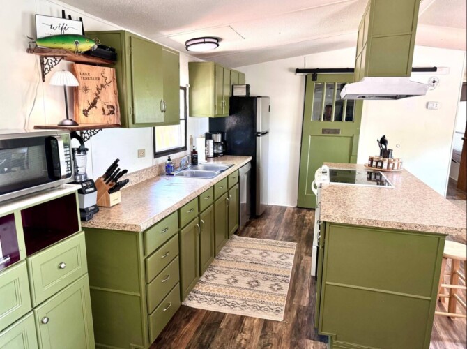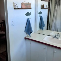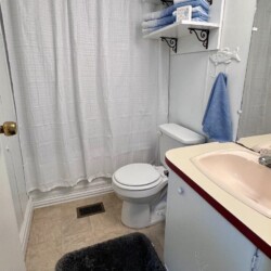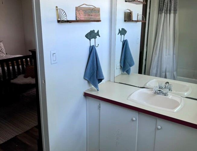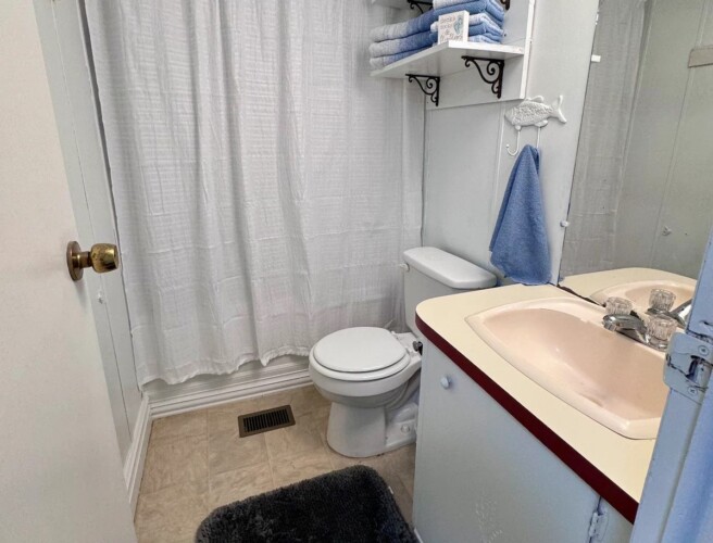 Canoe 22 is thoughtfully designed to meet all your needs for a comfortable stay. The first bedroom features a king-sized bed, offering the perfect space to rest and recharge. The second and third bedrooms are equipped with cozy queen beds, ensuring that every guest has a peaceful night’s sleep. All bedrooms come with soft bed linens, extra pillows, blankets, and room-darkening blinds to make your nights as comfortable as possible. You’ll also find ample storage for clothes so that you can feel right at home throughout your stay.