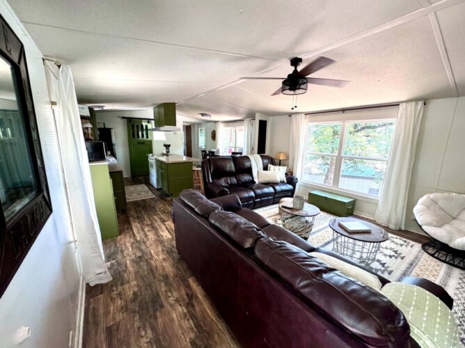 Canoe 22 is a serene retreat nestled in the trees of Cookson, Oklahoma, providing the perfect escape from the everyday hustle and bustle. This cabin offers an unforgettable stay for up to six guests, with three comfortable bedrooms and two bathrooms, allowing everyone plenty of space to unwind. As soon as you step inside, you’ll feel the warm, inviting atmosphere that instantly puts your mind at ease. Whether you’re here for a weekend getaway or a longer stay, Canoe 22 makes relaxation easy.