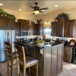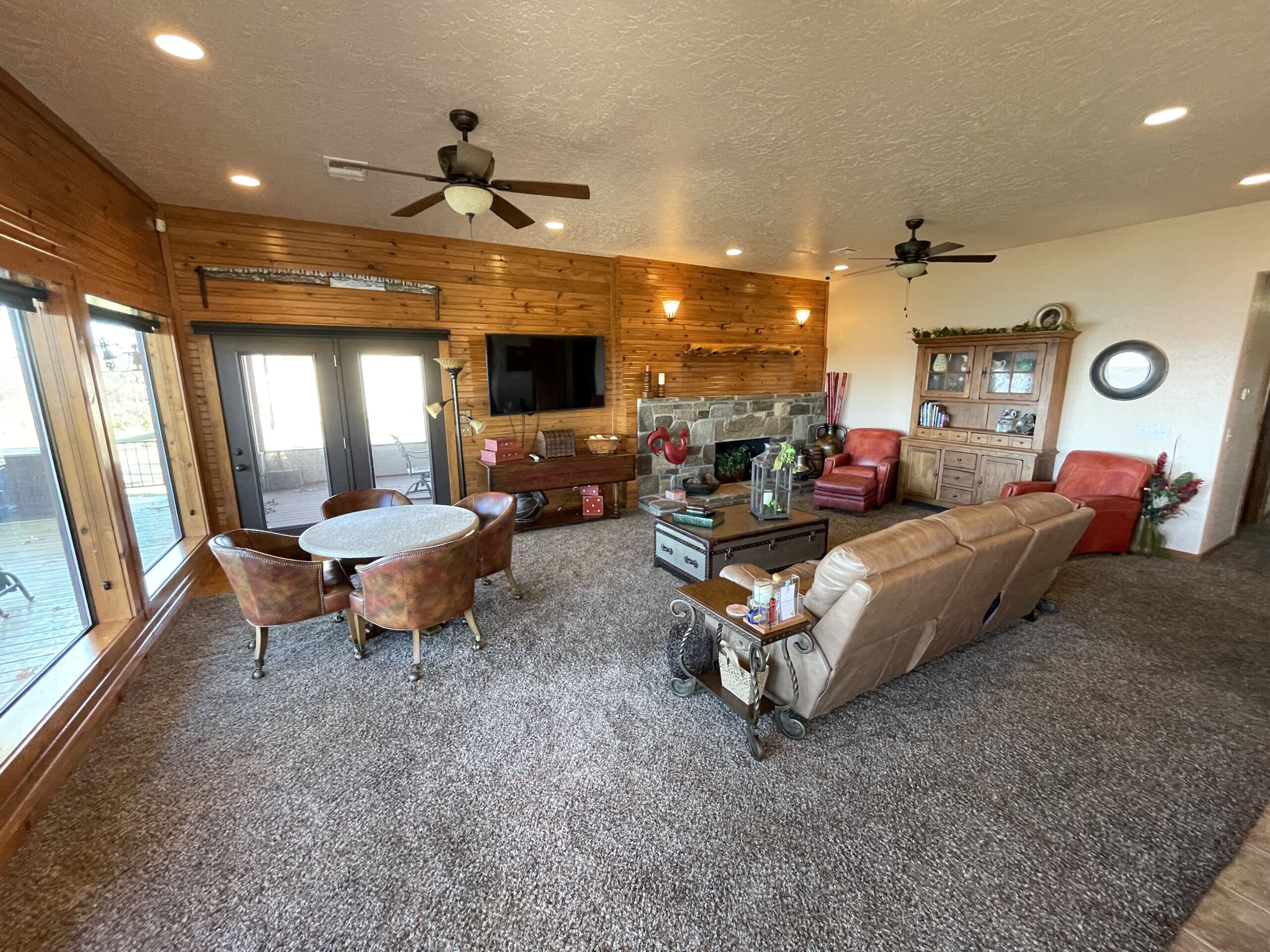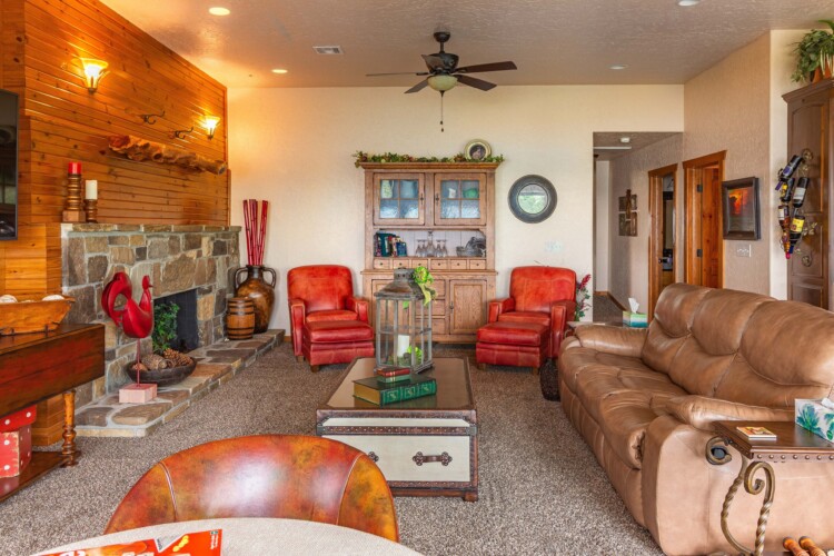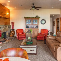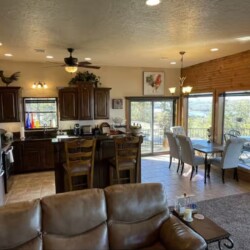 As you enter Eva’s Roost, you’ll be greeted by a spacious and well-equipped kitchen with a bar-height counter and comfortable chairs, making it the perfect spot for gathering and enjoying meals with family and friends. The living room is tastefully decorated and offers a cozy, relaxing space with ample seating. Step outside onto the deck/patio and be mesmerized by the breathtaking view of Lake Tenkiller. With eight chairs, you’ll have plenty of seating for outdoor dining or simply lounging and soaking in the natural beauty surrounding you.